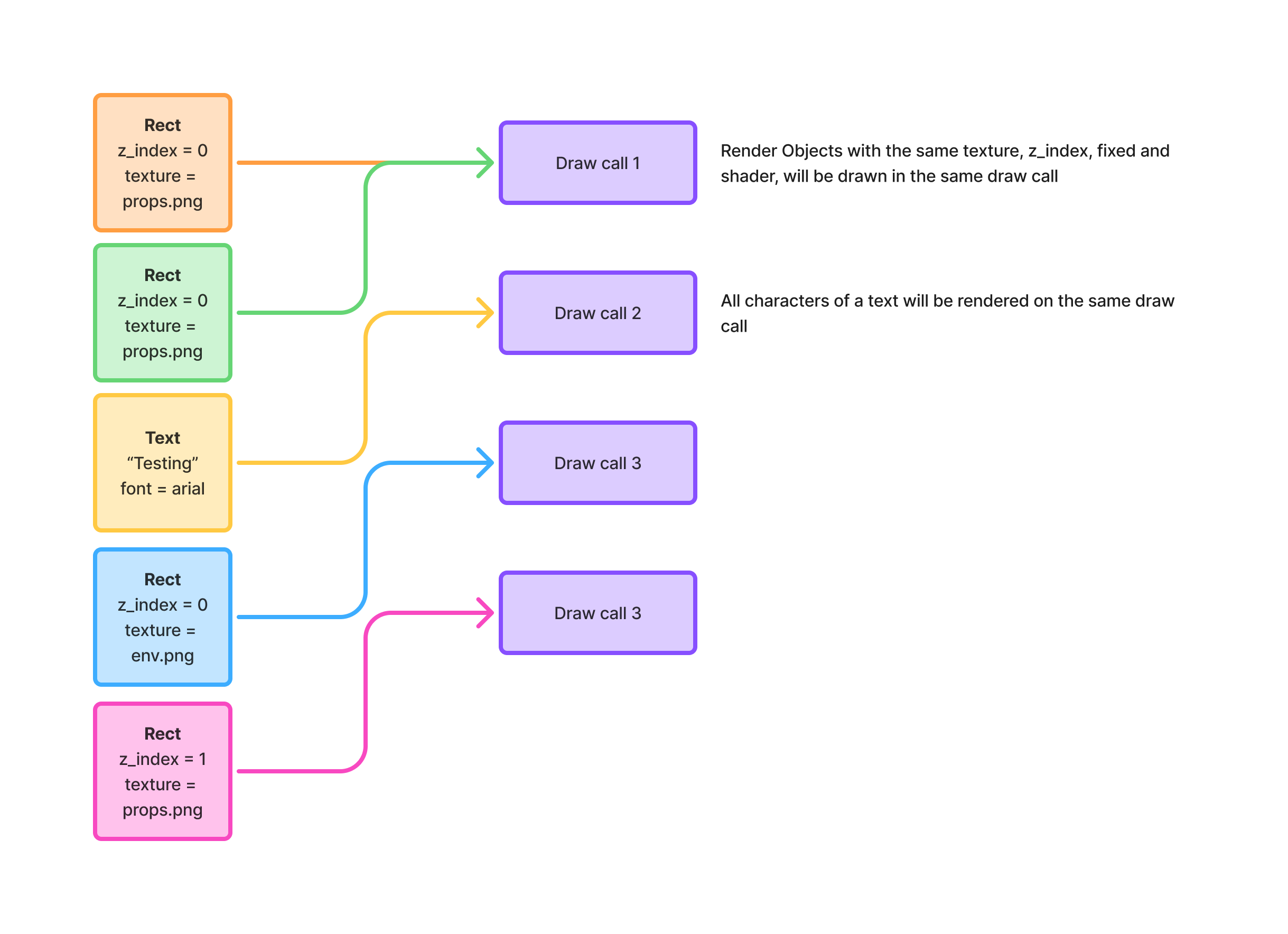 And for text, sucata draws each character in the same draw call.